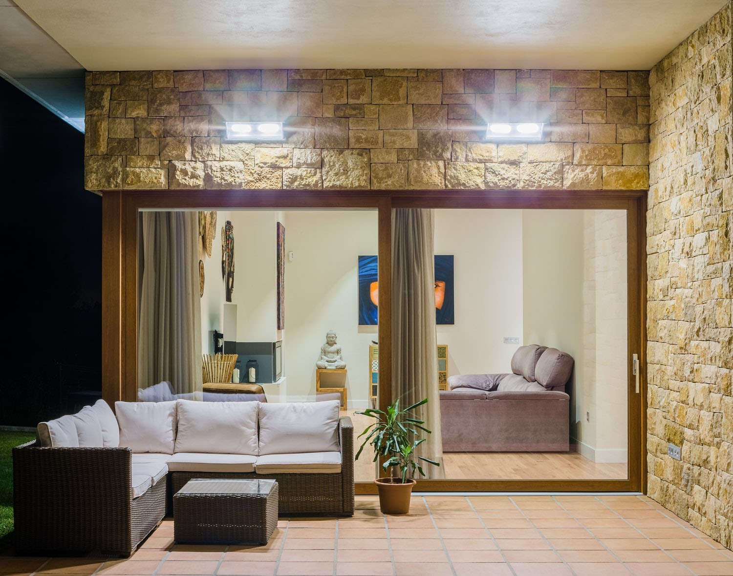 Materiales y volúmenes tradicionales en el exterior y una estética moderna y diáfana en el interior.